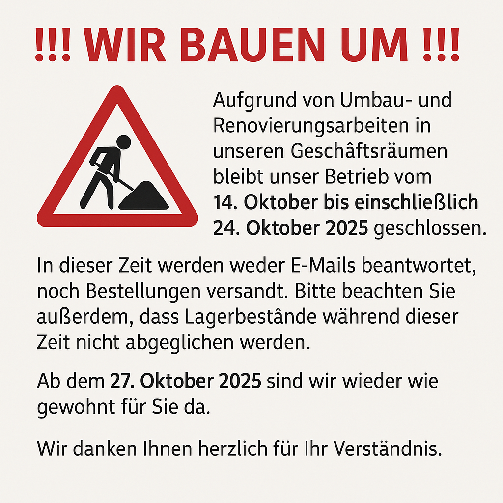 Vom 14.–24.10.2025 ist unser Betrieb geschlossen.